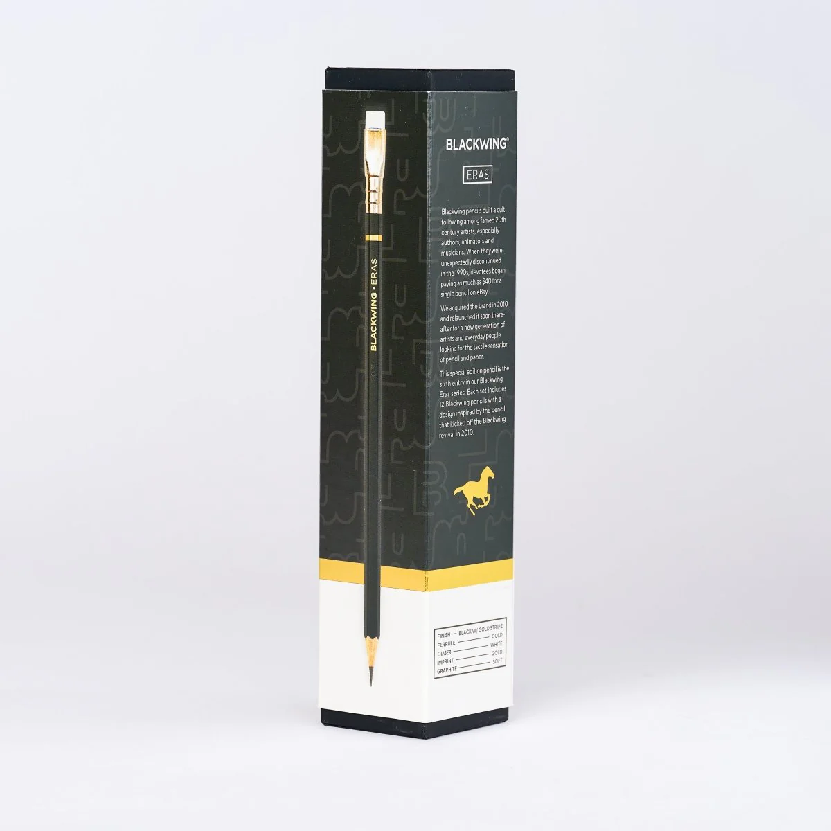 Nel 2020 Blackwing lancia la prima matita della serie Eras per celebrare i dieci anni del revival Blackwing ispirandosi direttamente ai modelli storici degli anni ’30. Nel 2021 esce la seconda matita Eras per rendere omaggio alle matite Palomino, nel 2022 il nuovo modello è caratterizzato dalla ghiera perforata a forma di freccia che si trovava nei modelli Blackwing della metà del XX secolo, mentre nel 2023 è la volta della nuova Eras contraddistinta dal fusto giallo. Nel 2024 l’ispirazione è la Microtomic 603.