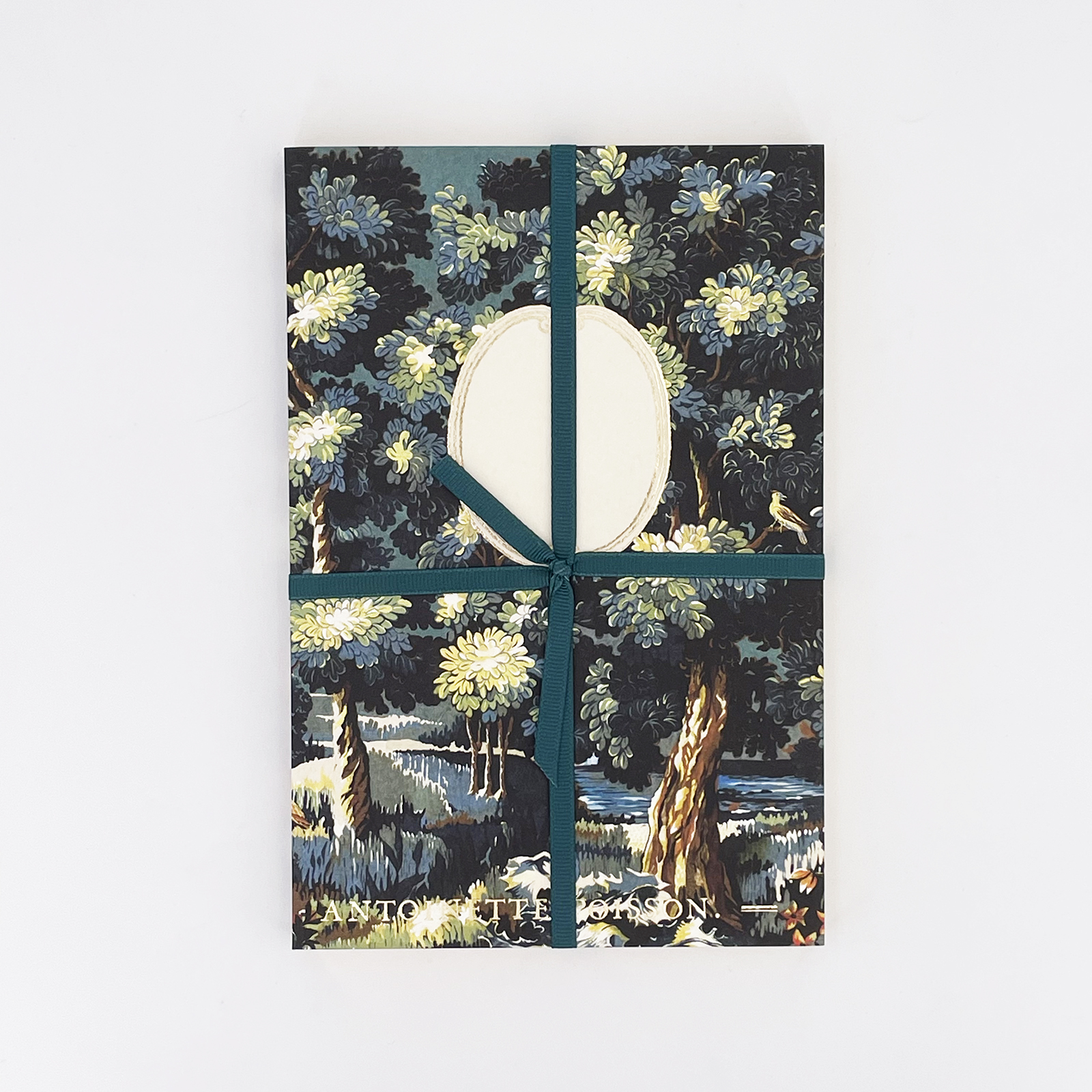I quaderni di Antoinette Poisson sono divenuti oramai dei classici della bottega parigina. Caratterizzati dalla copertina flessibile decorata con i preziosi pattern ispirati alle carte da parati e tessuti antichi, vengono impreziositi dall’etichetta con i bordi dorati realizzata a mano.