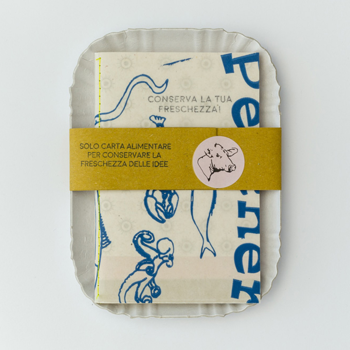 Taccuino lavorato a mano, misura 14.5 × 9.5 cm, confezione con vassoio alimentare – soggetto PESCE